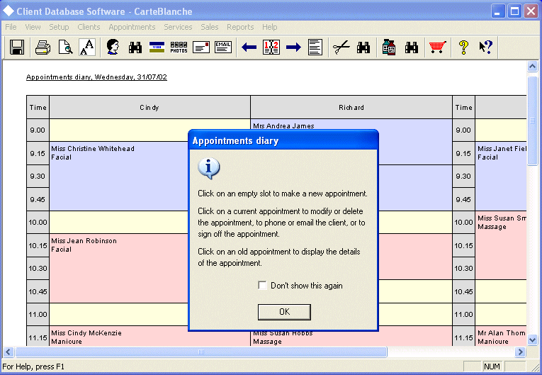 Screen Shot of CarteBlanche Appointments Diary (Windows XP)