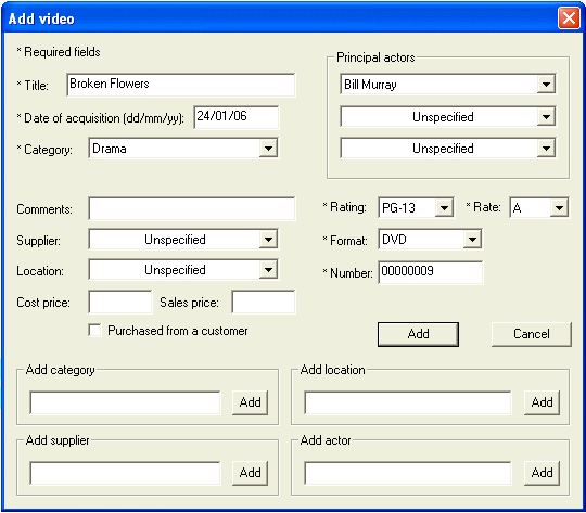 To add a video to the database, click on the DVD icon on the toolbar or press F5.